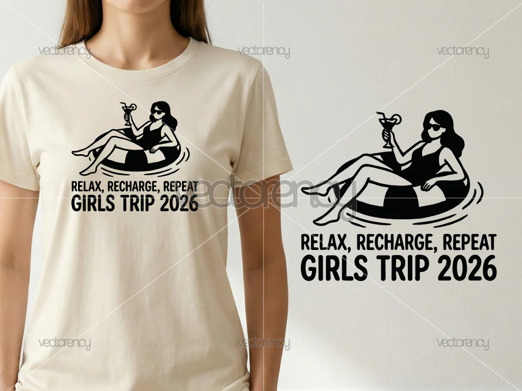 This premium Relax Recharge Repeat Girls Trip SVG Clipart Image vector design is created for creators who value clean typography, thoughtful layout, and production-ready quality. Designed to feel intentional, modern, and easy to use, it’s ideal for anyone looking for high-quality SVG cut files for Cricut and other cutting machines.